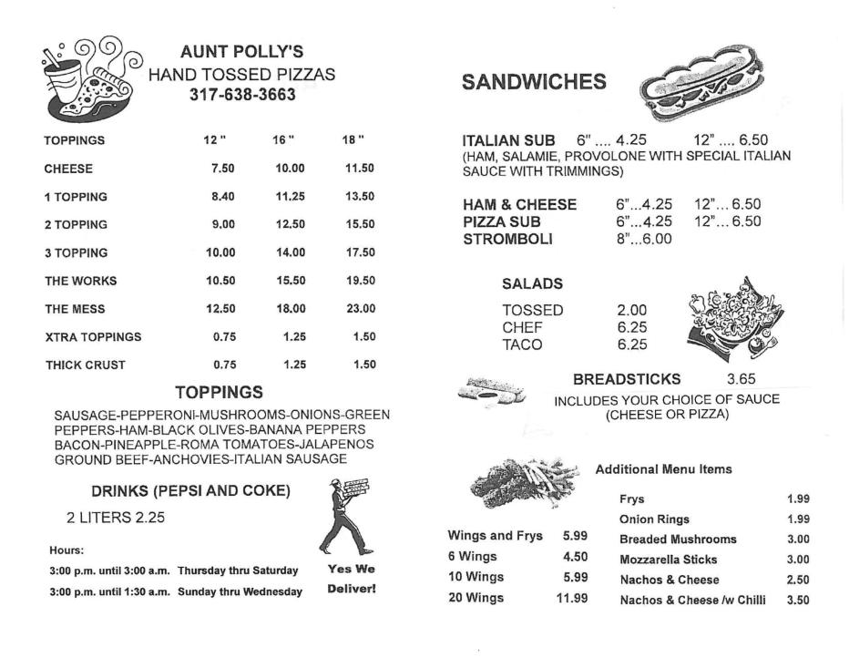 © Copyright 2013 Aunt Polly’s Pizza